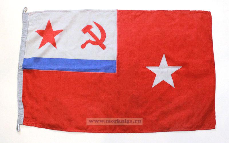 Полотнище красного цвета, имеющее в крыже флаг ВМФ СССР. В центре правой половины флага помещена одна белая звезда. Отношение ширины флага к длине - один к полтора. Размер флага в крыже равен 1/4 всего полотнища. Флаг с одной белой звездой - младший флагман, командир соединения кораблей. Флаг поднимался на фор-стеньге со спуском вымпела.
