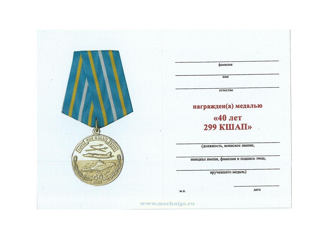 Медаль "40 лет 299 Корабельному штурмовому авиационному полку".