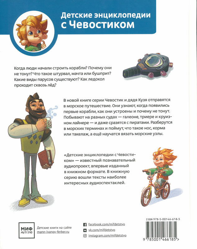 Чевостика и дядю Кузю ждут новые невероятные приключения. В очередной книге серии герои отправятся в плавание и побывают на разных судах: галеоне, ледоколе, пароходе и даже на круизном лайнере. Узнают, как и когда появились первые корабли, что такое киль, шпангоут и мачта, разберутся в том, какие виды парусов существуют, и научатся вязать морские узлы.