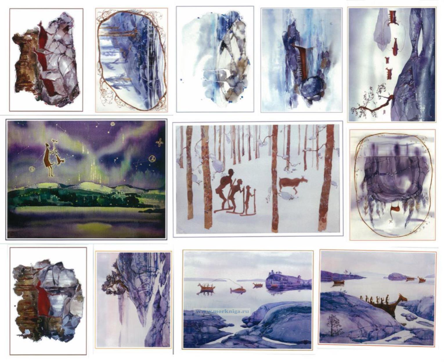 Огромные гладкие каменные плиты, столь характерные для этого рельефа, стали страницами книги, которую писали поколение за поколением люди эпохи неолита. Принято считать, что наскальные рисунки Фенноскандии являются отражением космогонических преданий наших далеких предков. Например, часто встречающиеся изображения лодок могли быть не столько иллюстрацией реальных сцен охоты на морского зверя, сколько символом перемещения в иные миры, и, вероятно, использовались в древности для совершения различных обрядов. Для нас эта книга полна загадок; но сама природа может дата подсказку - на побережье северных морей и озер, где особенно много подобных петроглифов, в белые ночи вода на горизонте сливается с небом так, что, кажется, нет меж ними границы, и, сев в лодку, в призрачном ночном свете можно проскользнуть за пределы повседневной реальности - так же, как тысячи лет назад.