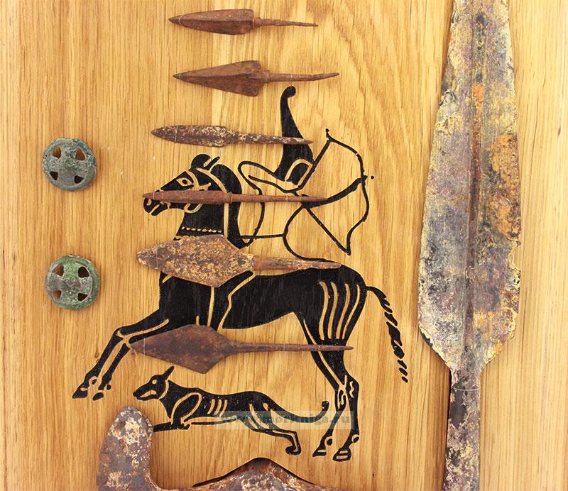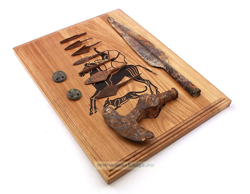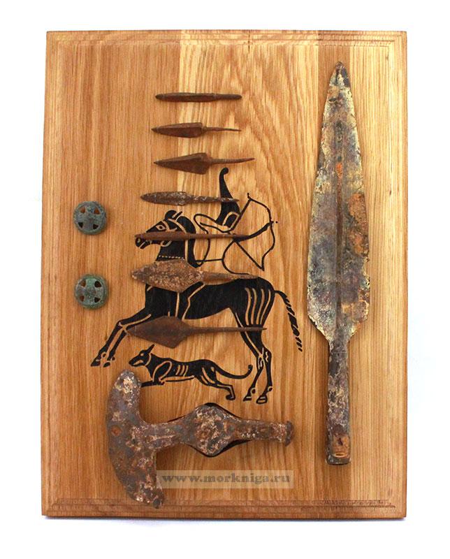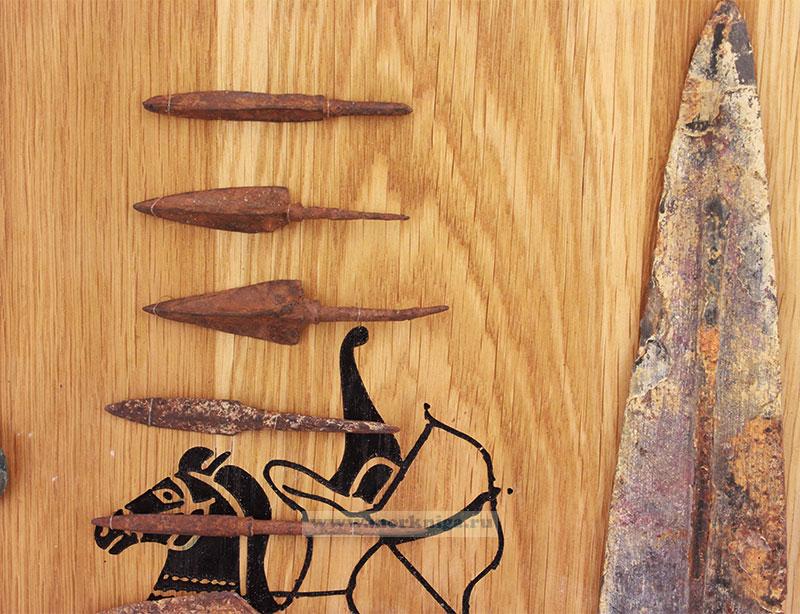 На стенде расположены подлинные предметы, найденные на территории Крыма: