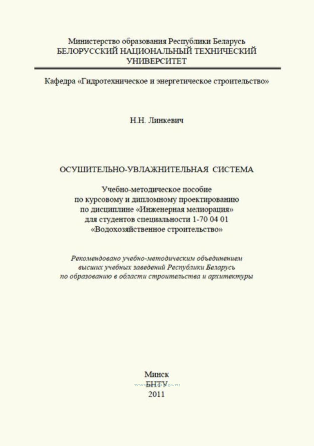 В учебно-методическом пособии приведены основные принципы проектирования и расчетов осушительных систем с закрытым дренажем при мелиорации земель для сельскохозяйственного использования.