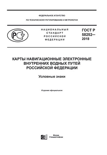 "ГОСТ Р 58252-2018. Национальный стандарт Российской Федерации. Карты навигационные электронные внутренних водных путей Российской Федерации. Условные знаки" утв. Приказом Федерального агентства по техническому регулированию и метрологии от 23 октября 2018 г. N 826-ст
