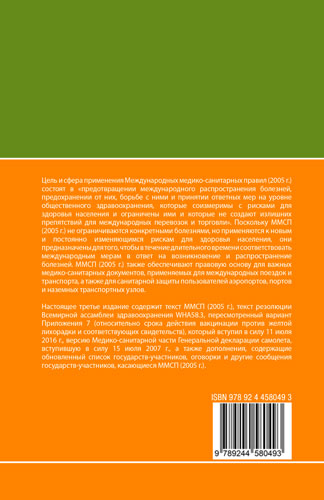 Настоящее второе издание содержит текст ММСП (2005 г.), текст резолюции Всемирной ассамблеи здравоохранения WHA58.3, версию Медико-санитарной части Генеральной декларации самолета, вступившую в силу 15 июля 2007 г., а также дополнения, содержащие список государств-участников, оговорки и другие сообщения государств-участников, касающиеся ММСП (2005 г.).