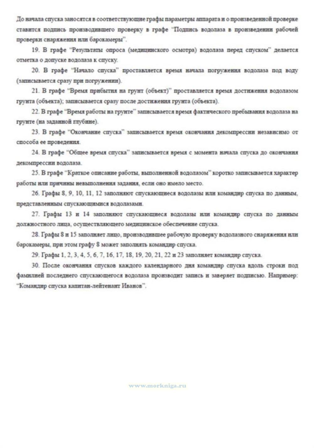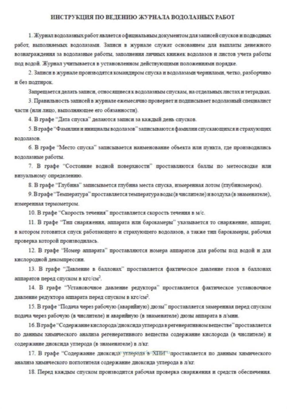 Журнал водолазных работ является официальным документом для записей спусков и подводных работ, выполняемых водолазами.
