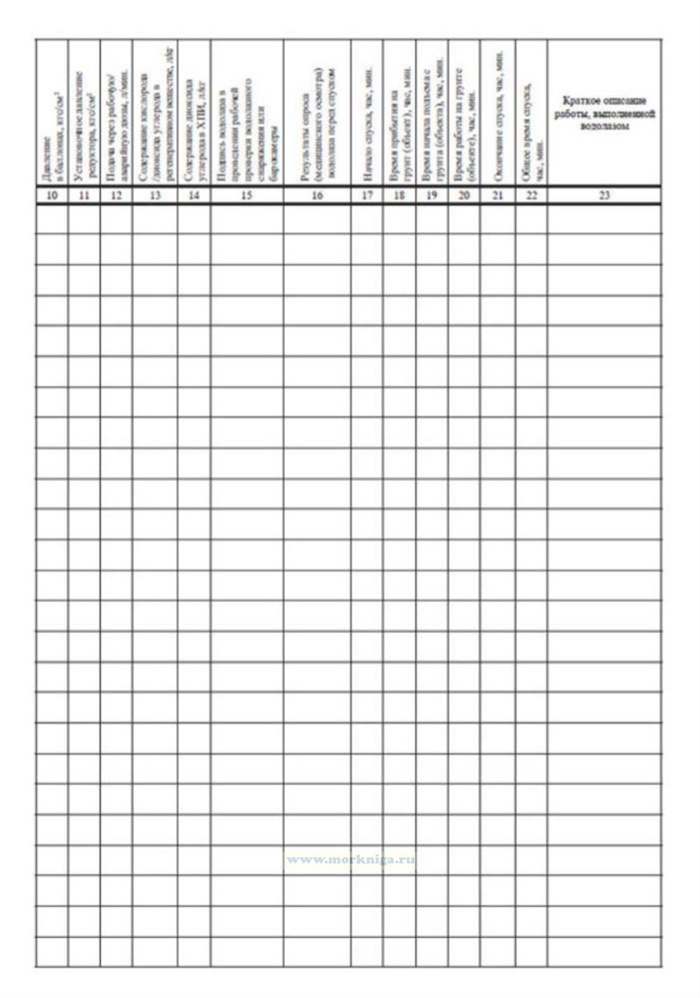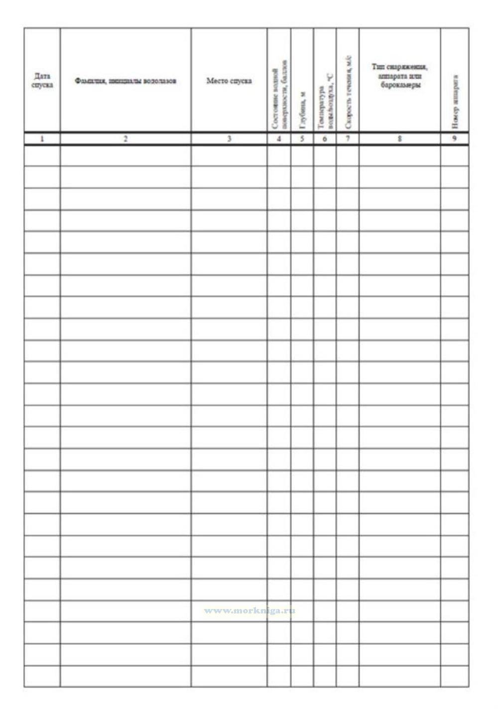 См. также Журнал водолазных работ (Приказ Росгвардии от 07.06.2017 N 163)