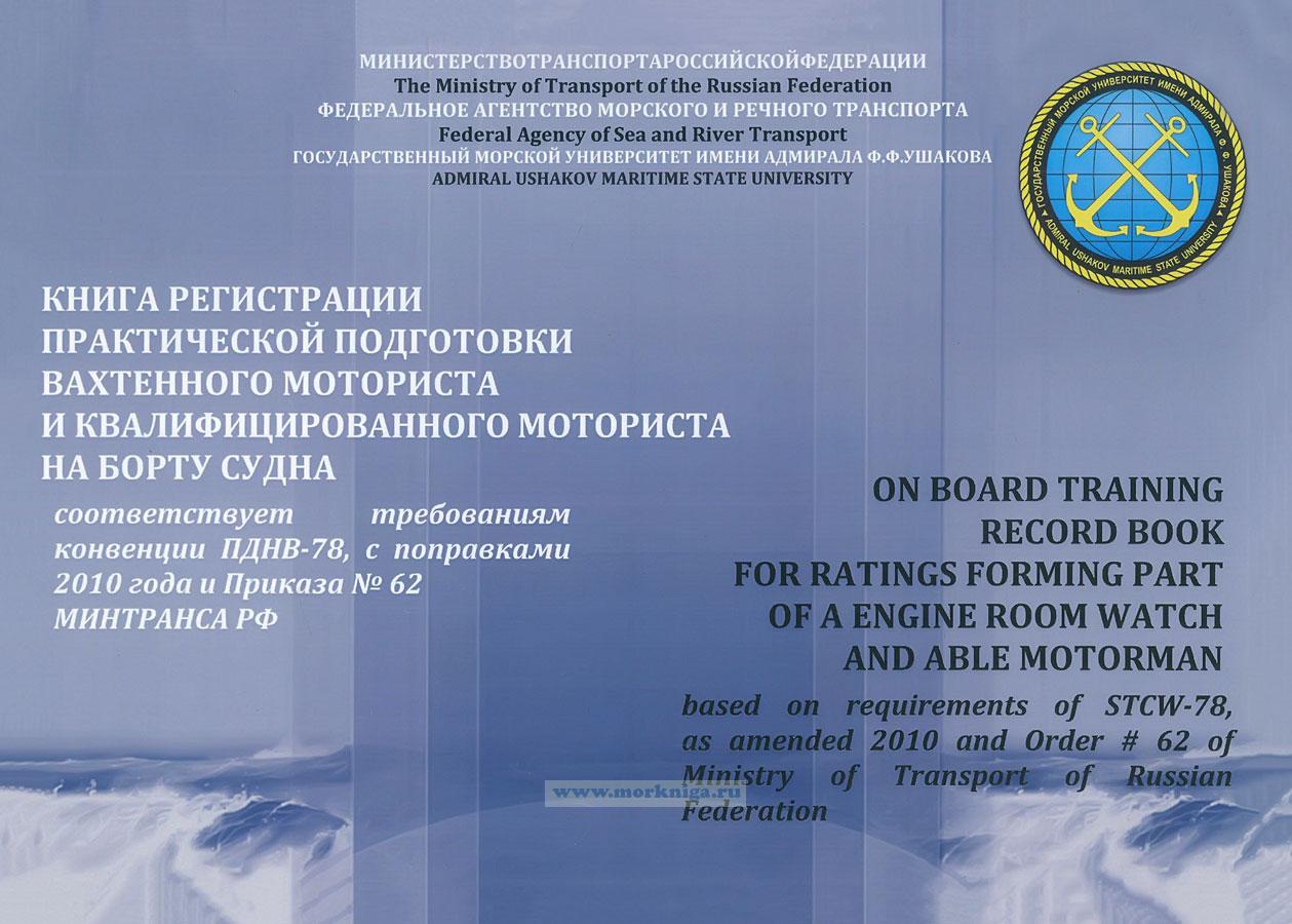 Международная Конвенция о подготовке и дипломировании моряков и несении вахты 1978 года с поправками (ПДНВ-78 с поправками) требует, чтобы кандидат на получение профессионального диплома рядового состава машинной вахты на судах с традиционно обслуживаемым или периодически безвахтенно обслуживаемым машинным отделением (вахтенный моторист), кроме теоретической подготовки в учебном заведении, имел одобренный стаж работы на судне. Программа подготовки на судне является составной частью учебного плана подготовки моториста. Книга регистрации практической подготовки представляет подробную информацию о задачах и обязанностях, которые должны выполняться на судах, а также о достигнутом уровне подготовки. Предусмотренная программа подготовки на судне полностью охватывает требования Международной Конвенции ПДНВ-78 с поправками.