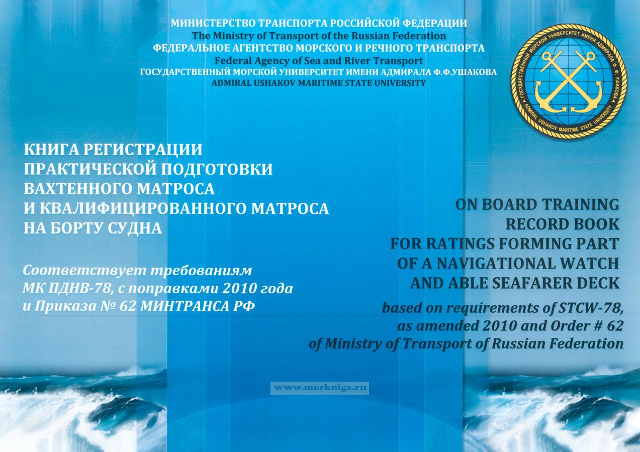 Международная Конвенция о подготовке и дипломировании моряков и несении вахты 1978 года с поправками (ПДНВ-78 с поправками) требует, чтобы кандидат на получение профессионального диплома вахтенного матроса и матроса первого класса, кроме теоретической подготовки в учебном заведении, имел одобренный стаж работы на судне. Программа подготовки на судне является составной частью учебного плана подготовки вахтенного матроса. Книга регистрации практической подготовки представляет подробную информацию о задачах и обязанностях, которые должны выполняться на судах, а также о достигнутом уровне подготовки. Предусмотренная программа подготовки на судне полностью охватывает требования Международной Конвенции ПДНВ-78 с поправками.