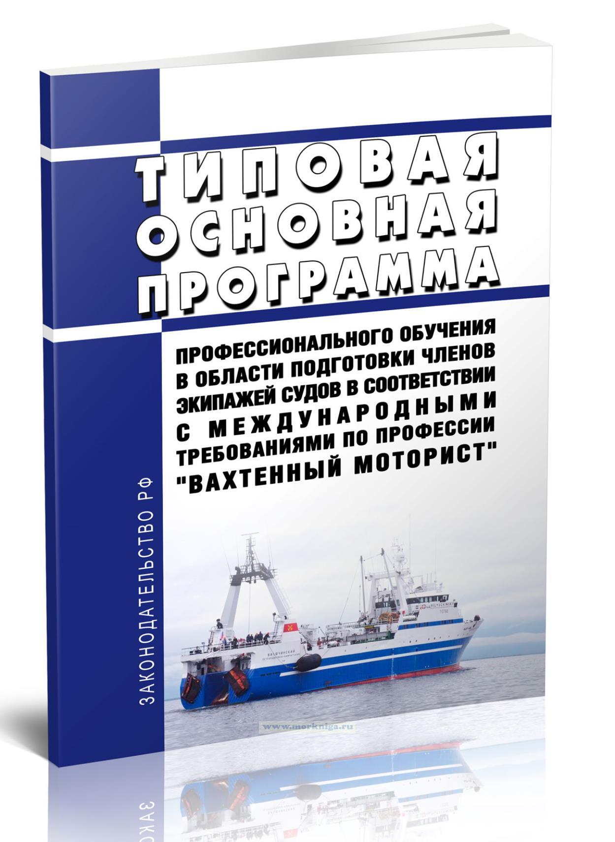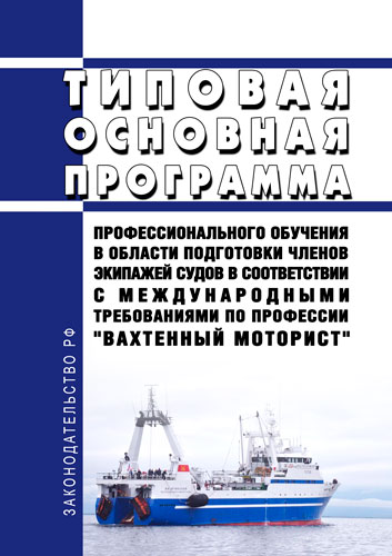 Типовая основная программа профессионального обучения в области подготовки членов экипажей судов в соответствии с международными требованиями по профессии "Вахтенный моторист" разработана в соответствии с Федеральным законом от 29 декабря 2012 г. N 273-ФЗ "Об образовании в Российской Федерации", приказом Минтранса России от 15 марта 2012 г. N 62 "Об утверждении Положения о дипломировании членов экипажей морских судов", положениями Международной конвенции о подготовке и дипломировании моряков и несении вахты и другими нормативными правовыми актами, регламентирующими профессиональный уровень лиц рядового состава морских судов.