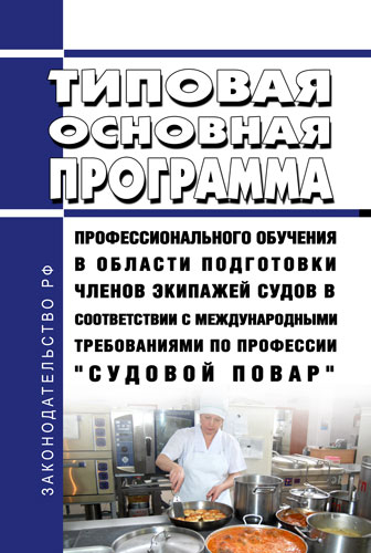 Типовая основная программа профессионального обучения в области подготовки членов экипажей судов в соответствии с международными требованиями по профессии "Судовой повар" соответствует Приложению 3 к Приказу Минтранса России от 17.07.2014 N 188 "Об утверждении типовых основных программ профессионального обучения в области подготовки членов экипажей судов в соответствии с международными требованиями"