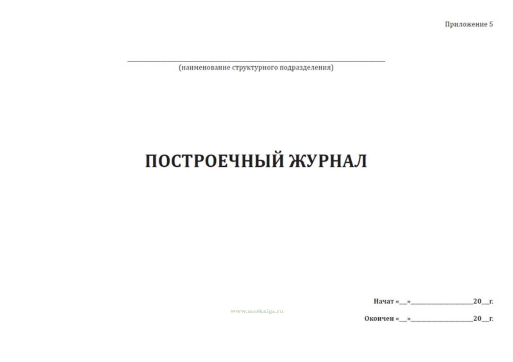 Форма построечного журнала соответствует Приложению 5 к Правилам Российского Речного Регистра