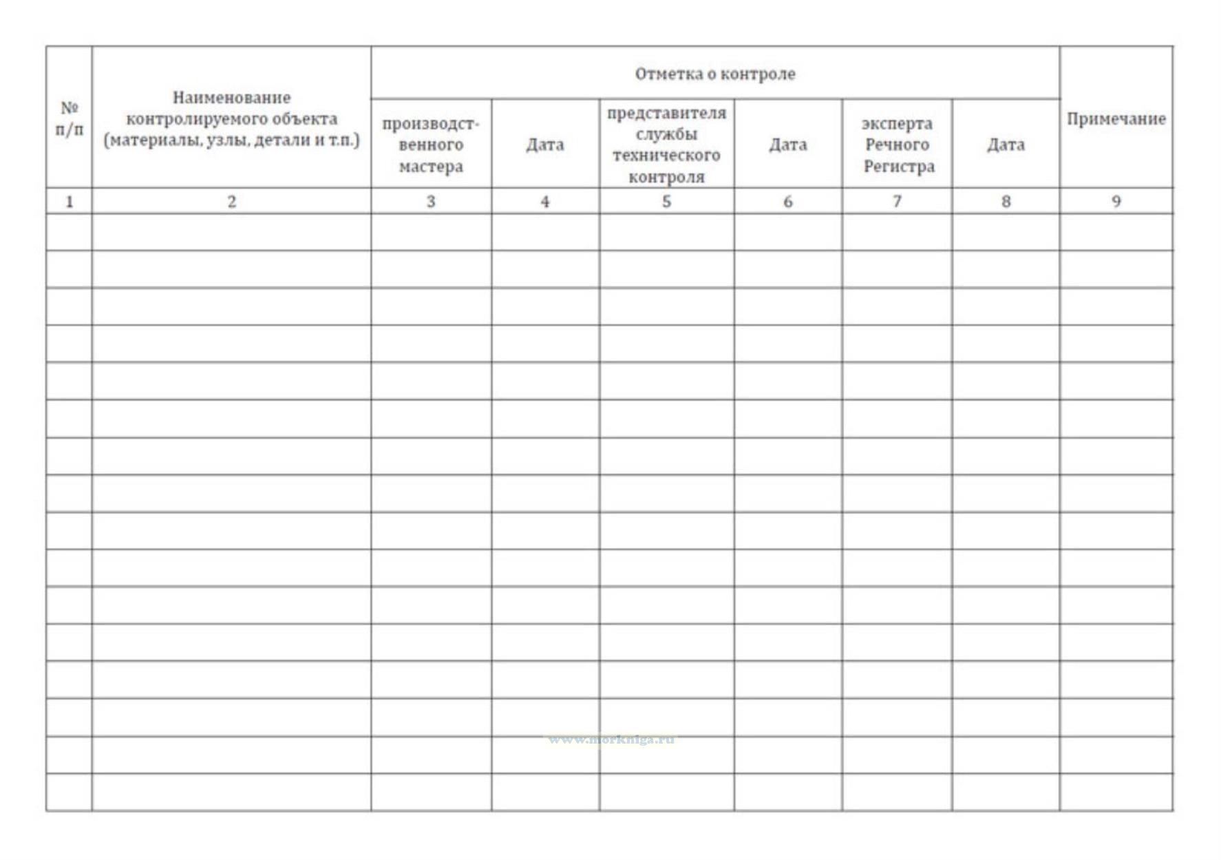Результаты контрольных проверок контролируемых объектов (материалов, узлов, деталей и т.п.) заносятся в построечный журнал с отметкой о контроле производственного мастера, представителя службы технического контроля и эксперта Речного Регистра.