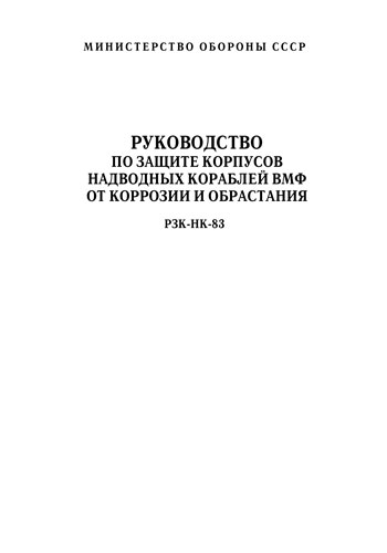Настоящее Руководство является организационно-техническим документом для личного состава надводных кораблей, а также военных представительств МО СССР и организаций ВМФ по защите от коррозии и обрастания надводных боевых кораблей, кораблей специального назначения, морских и рейдовых судов обеспечения ВМФ, находящихся в эксплуатации и ремонте на заводах ВМФ и промышленности. Руководство может использоваться ЦКБ-проектантами при составлении эксплуатационных документов по защите от коррозии и обрастания кораблей ВМФ.