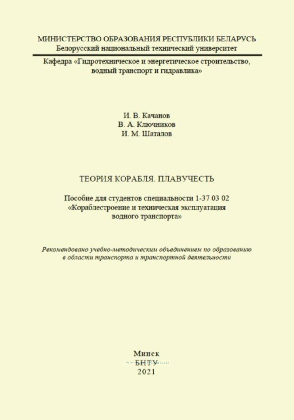 Пособие содержит изложение основных вопросов, изучаемых в разделе «Плавучесть» дисциплины «Теория корабля». Изложенный в пособии материал будет способствовать формированию у студентов-корабелов знаний, необходимых для решения практических задач в процессе эксплуатации, ремонта и проектирования объектов водного транспорта.