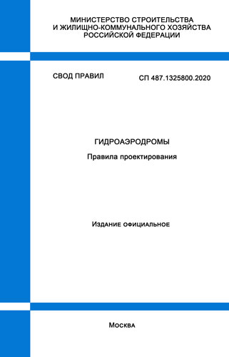 "СП 487.1325800.2020 Гидроаэродромы. Правила проектирования" утв. приказом Министерства строительства и жилищно-коммунального хозяйства Российской Федерации от 17 декабря 2020 г. № 803/пр и введен в действие с 18 июня 2021 г.