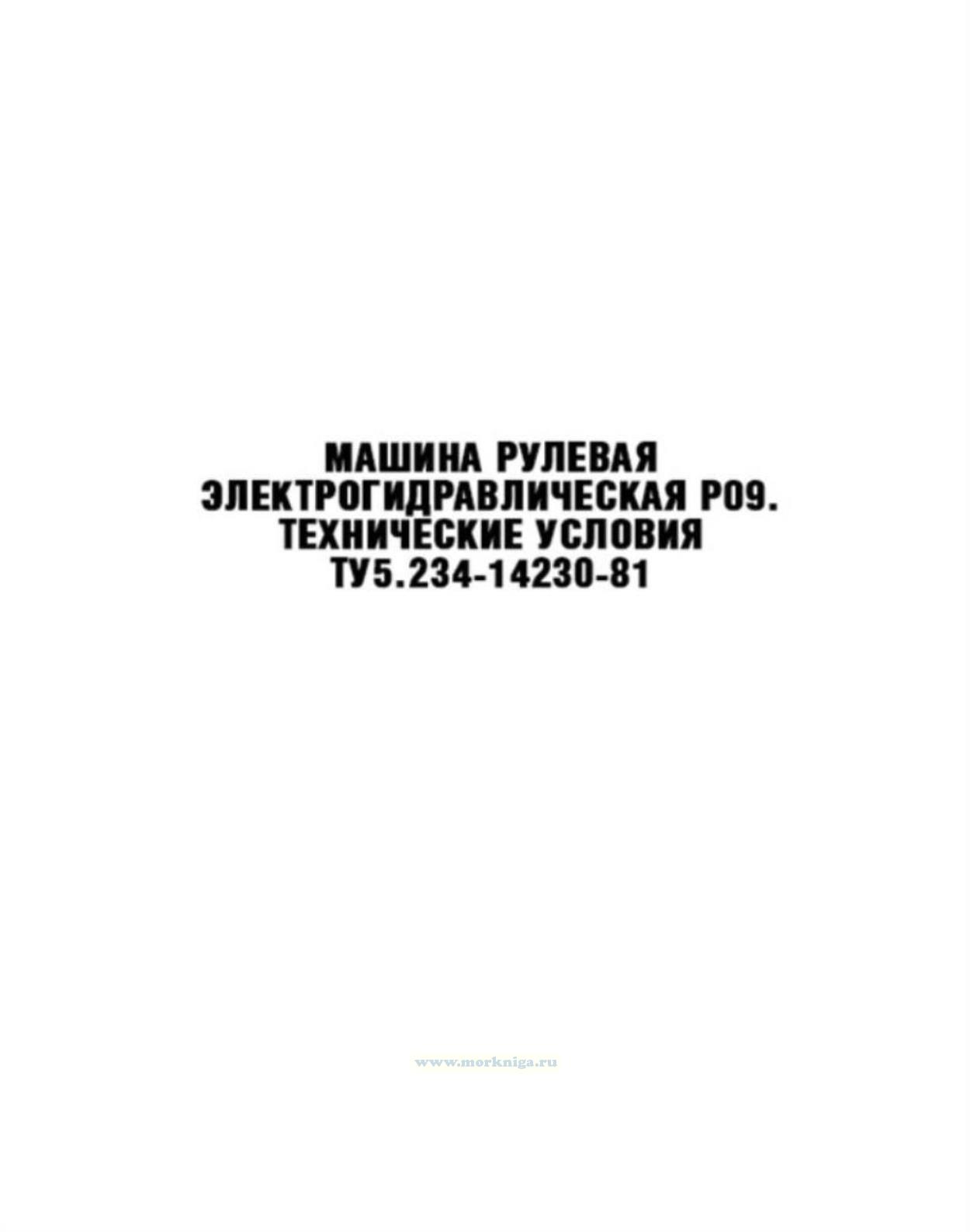 Настоящие технические условия распространяются на машину рулевую электрогидравлическую Р09, предназначенную для установки на морских судах неограниченного района плавания, поднадзорных Регистру Союза ССР.