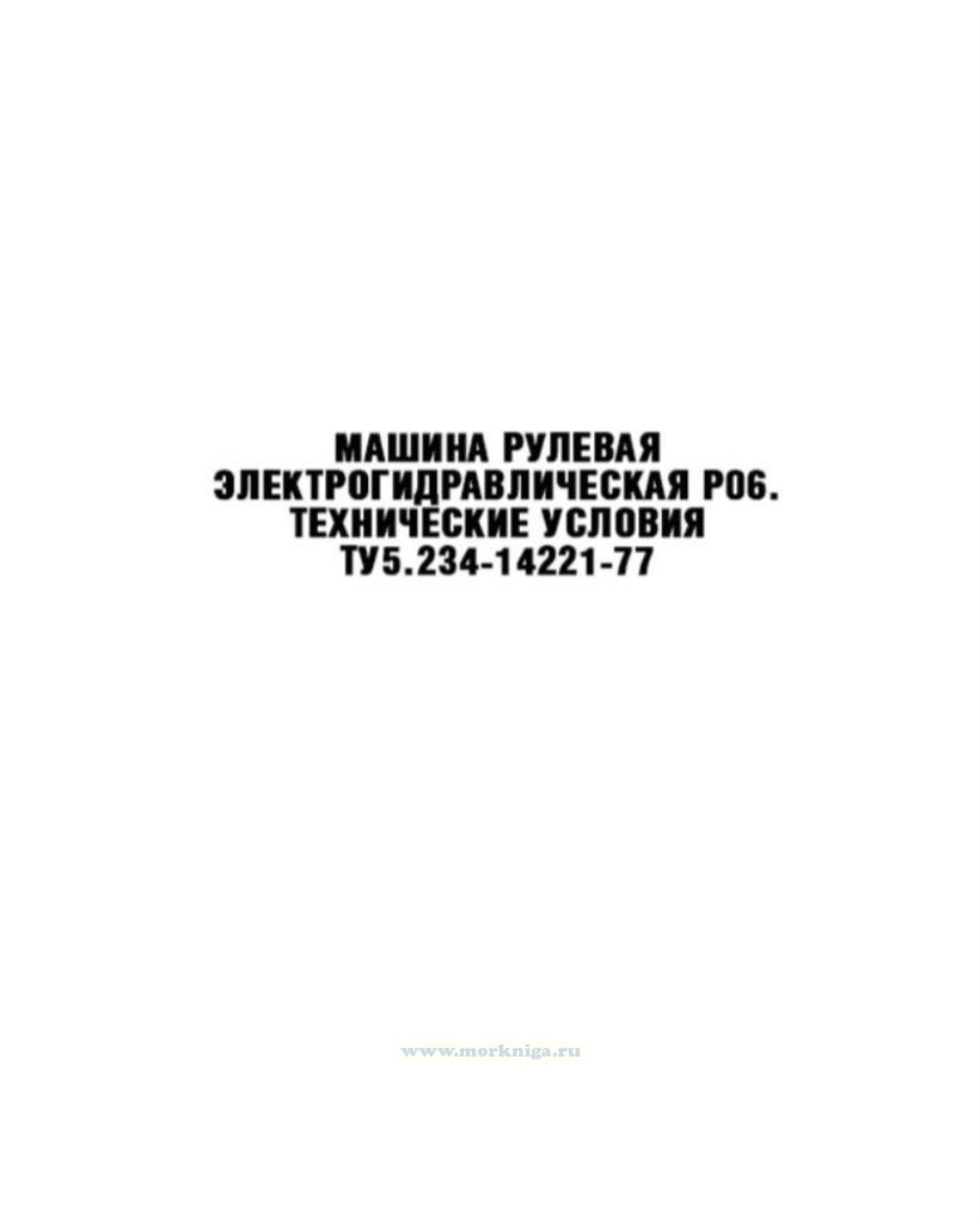 Настоящие технические условия распространяются на машину рулевую электрогидравлическую Р06, предназначенную для установки на морских судах неограниченного района плавания, поднадзорных Регистру Союза ССР.