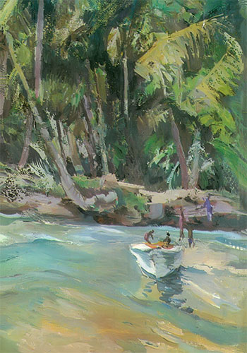 Художники создали сотни этюдов, картин, портретов. Авторы стремятся, чтобы читатель стал участником океанской экспедиции, увидел океан в его разных состояниях. Особенно подробно рассказано о пребывании экспедиции в новогвинейской деревне Бонгу, где жил русский исследователь Н, Н. Миклухо-Маклай.