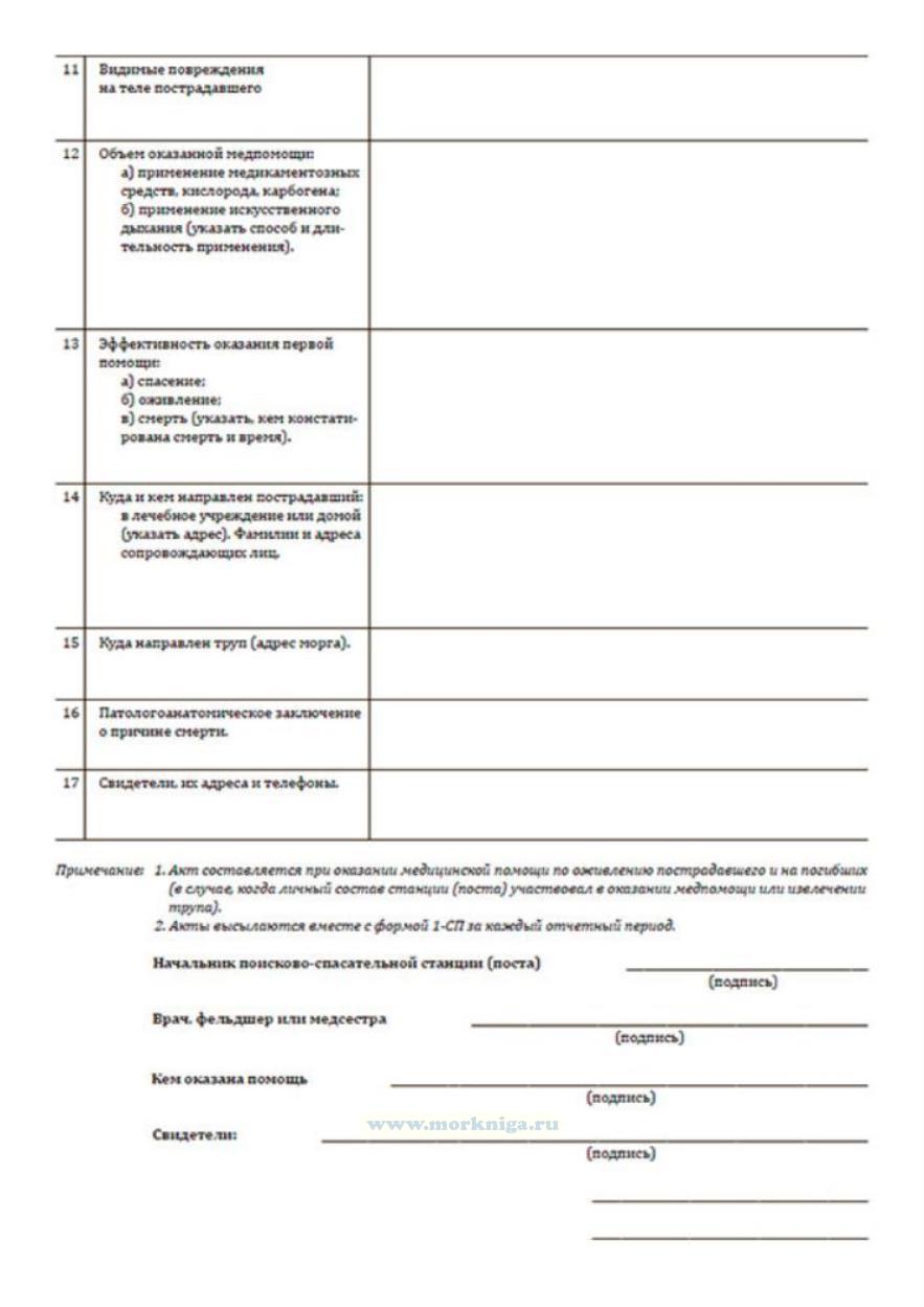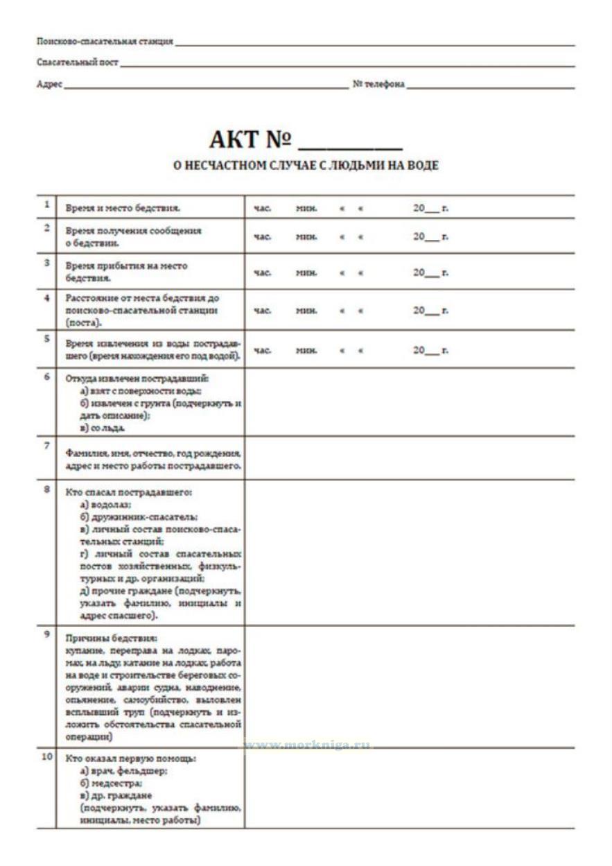 Книга актов о несчастных случаях с людьми на воде содержит графы: