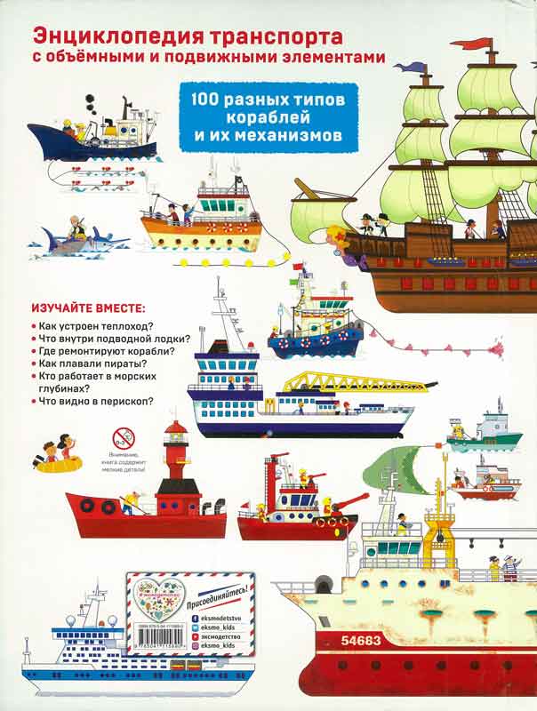 Это настоящая энциклопедия транспорта -100 разных типов кораблей и механизмов! А еще здесь так много открывающихся окошек и подвижных конструкций!