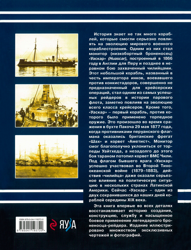 История знает не так много кораблей, которые смогли серьезно повлиять на эволюцию мирового военного кораблестроения. Одним из них стал монитор (низкобортный броненосец) «Уаскар» (Huascar), построенный в 1866 г. в Англии для Перу и позднее в неравном бою захваченный чилийцами. Этот небольшой корабль, названный в честь императора инков, воевавшего против конкистадоров, совершенно не предназначенный для крейсерских операций, стал одним из самых успешных рейдеров в истории парового флота, заметно повлияв на эволюцию всего класса крейсеров. Кроме того, «Уаскар» - первый корабль, против которого было применено торпедное оружие. Это произошло во время сражения в бухте Пакоча 29 мая 1877 г., когда противниками перуанского флагмана оказались британские фрегат «Шах» и корвет «Аметист». Монитор смог благополучно уклониться от торпеды Уайтхеда, а незадолго до этого боя тараном потопил корвет ВМС Чили. Под флагом бывшего врага «Уаскар» успешно участвовал во Второй Тихоокеанской войне (1879-1883), действия «чилийца» даже оказали серьезное влияние на политическую ситуацию в нескольких странах Латинской Америки. Сейчас «Уаскар» один из двух сохранившихся до наших дней кораблей середины XIX в.
