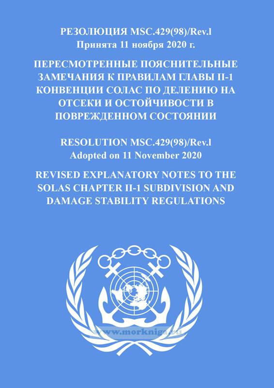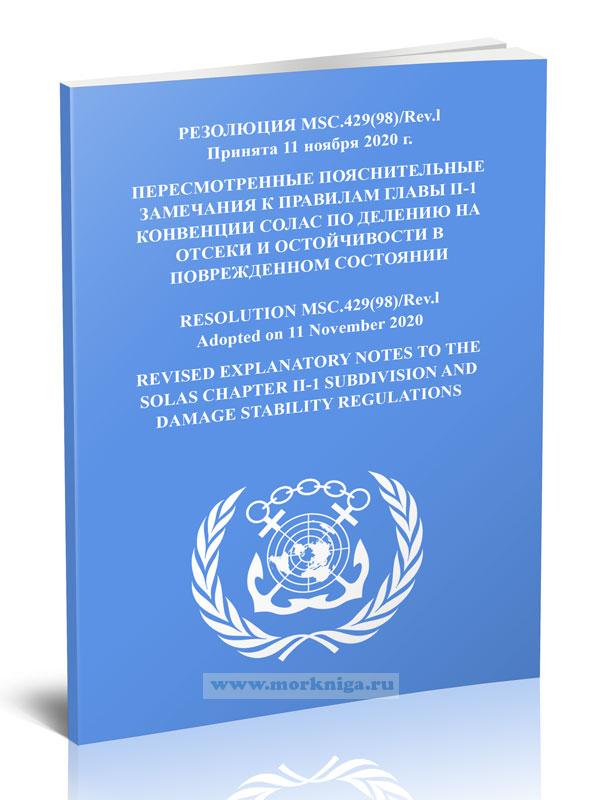 Резолюция MSC.429(98)/Rev. 1 "Пересмотренные пояснительные замечания к правилам главы II-1 Конвенции СОЛАС по делению на отсеки и остойчивости в поврежденном состоянии" входит в Сборник № 66 резолюций ИМО/ Collection No.66 of IMO Resolutions.