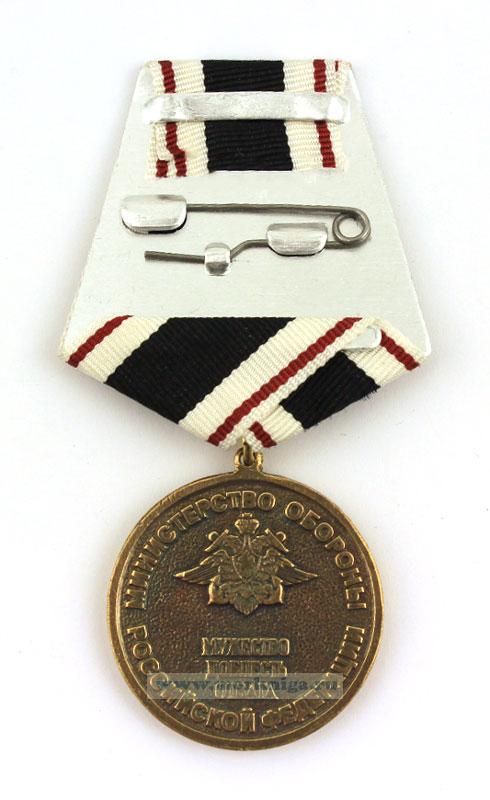 Оборотную сторону медали занимает орел на якорях - эмблема ВМФ, под которой нанесено «Мужество. Доблесть. Отвага».
