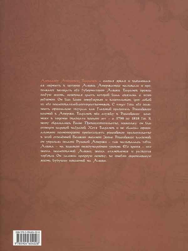 С 1805 года его должность официально звучала как Главный правитель Российских колоний в Америке. Баранов нёс службу в Российских колониях в течение двадцати восьми лет - с 1790 по 1818 год. К нему обращались Ваше Превосходительство, поскольку он был отмечен царской наградой. Хотя Баранов и не обладал официальными полномочиями представлять российское правительство в этой отделённой Великим океаном Земле Российских владений, он управлял делами Русской Америки - так называлась тогда Аляска - на высоком международном уровне. Его время - это эпоха исследований Аляски, эпоха становления и развития торговли. Он заложил прочную основу, во многом определившую жизнь будущих поколений на Аляске.