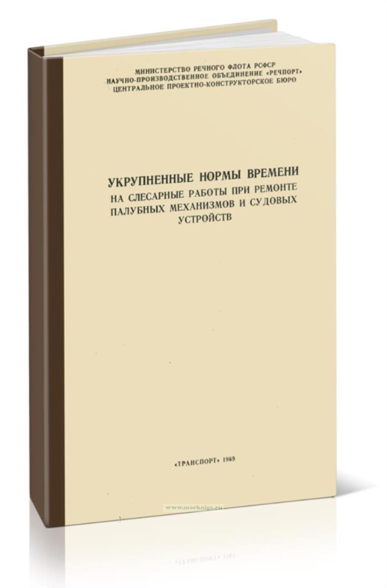 Сборник «Укрупненные нормы времени на слесарные работы при ремонте палубных механизмов и судовых устройств» является переработанным и дополненным изданием сборников «Нормы времени на слесарные работы при ремонте палубных механизмов судовых устройств», части 1-4, 1975 г.