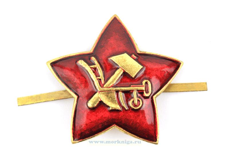 Звезда эмблема РККА с символом «плуг и молот» впервые введена приказом Народного комиссариата по военным делам в апреле 1918 г. как нагрудный знак красноармейцев и командиров Красной Армии. В июле 1918 г. пятиконечная красная звезда с эмблемой "плуг и молот" по решению 5-го Всероссийского Съезда Советов была установлена как отличительный значок для ношения на головных уборах красноармейцев и командиров РККА.