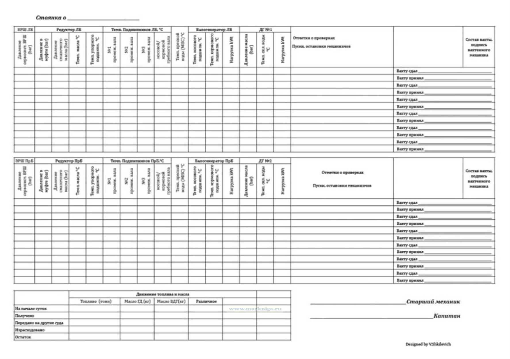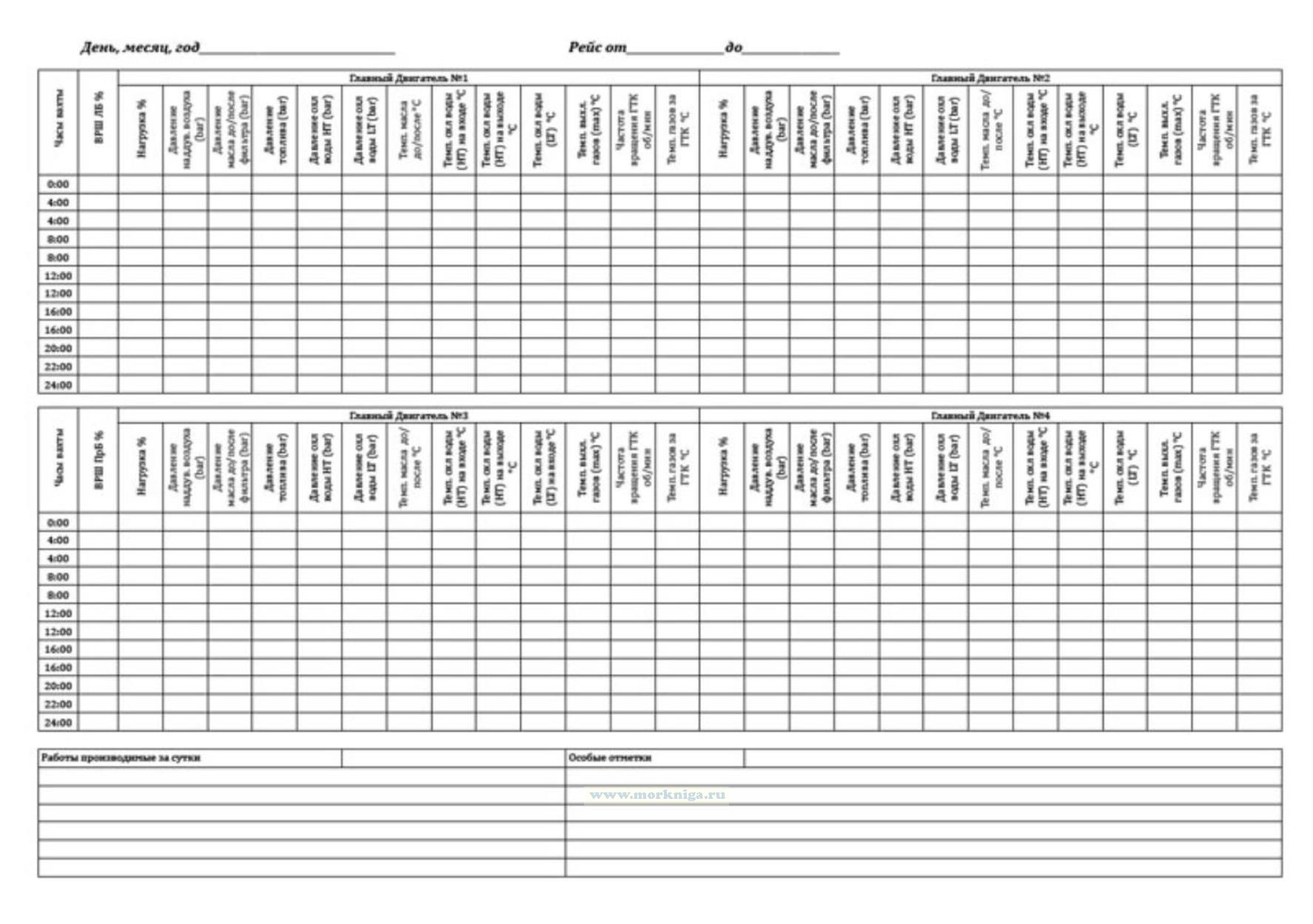 9. Вахтенный механик в течение вахты, с периодичностью не реже одного раза в час, записывает всю информацию в соответствии с графами машинного журнала.