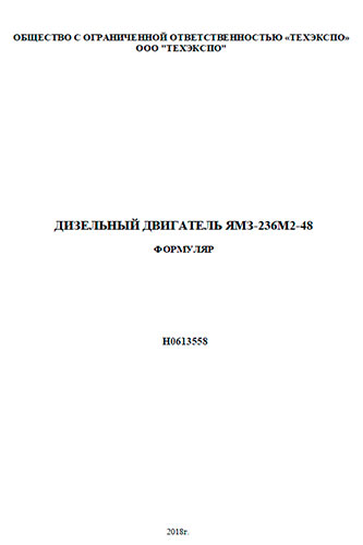 Настоящий формуляр является документом, удостоверяющим основные технические параметры Дизельного двигателя ЯМЗ-236М2-48 заводской № H0613558, гарантируемые его изготовителем и дающим информацию о техническом состоянии Двигателя после изготовления и испытаний.