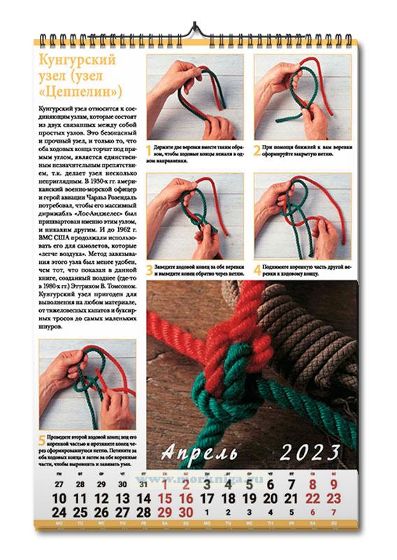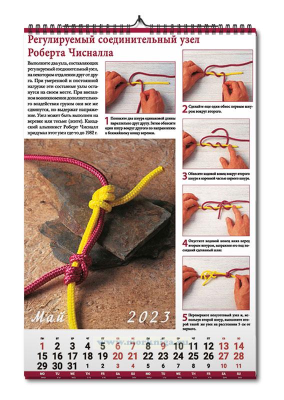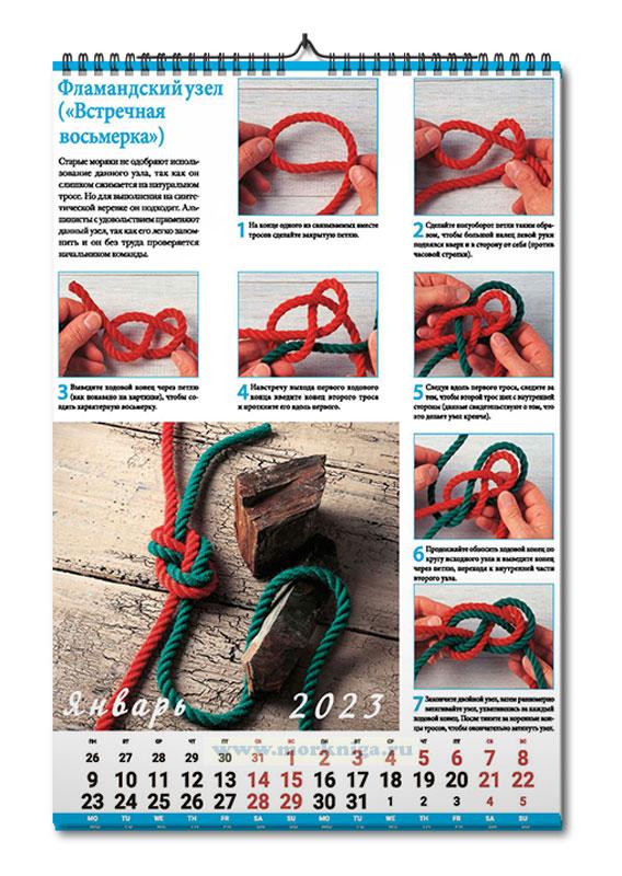 На календаре представлены 12 изображений узлов с описанием, характеристиками и способами завязывания: