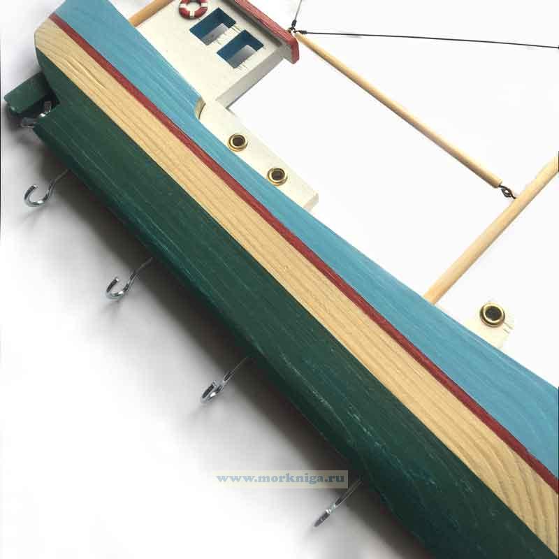 Вешалка в морском стиле в форме корабля изготовлена вручную из дерева.