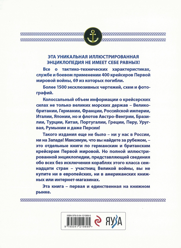 Такого издания еще не было - ни у нас в России, ни на Западе! Максимум, что вы найдете за рубежом, - это отдельные книги по германским и британским крейсерам Первой мировой. Но полной иллюстрированной энциклопедии, представляющей сведения обо всех без исключения кораблях этого класса семнадцати стран - участниц Великой войны, вы не купите ни в европейских, ни в американских книжных или интернет-магазинах.