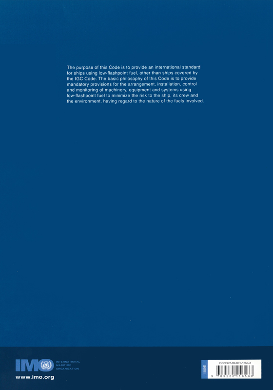 The purpose of this Code is to provide an international standard for ships using low flashpoint fuel, other than ships covered by the IGC Code. The basic philosophy of this Code that comes into force on 1 January 2017 is to provide mandatory provisions for the arrangement, installation, control and monitoring of machinery, equipment and systems using low flashpoint fuel to minimize the risk to the ship, its crew and the environment, having regard to the nature of the fuels involved.