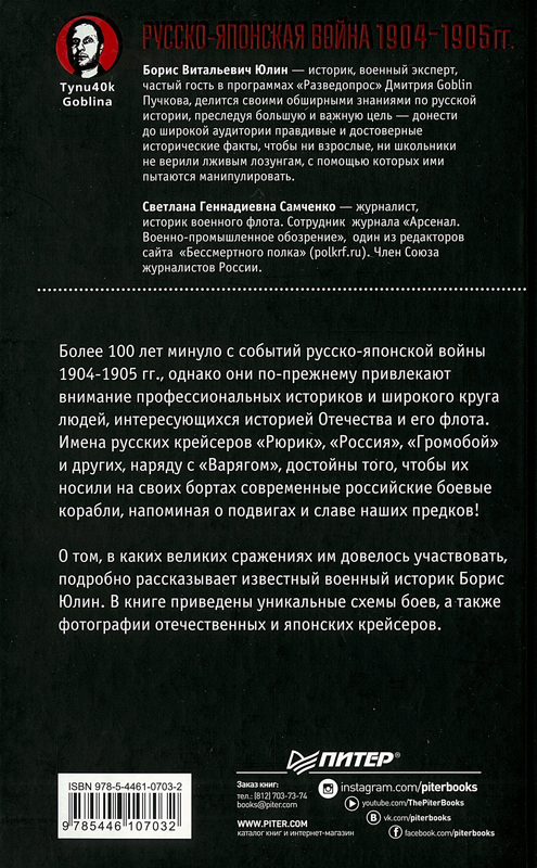 Более 100 лет минуло с событий русско-японской войны 1904-1905 гг., однако они по-прежнему привлекают внимание профессиональных историков и широкого круга людей, интересующихся историей Отечества и его флота. Имена русских крейсеров «Рюрик», «Россия», «Громобой» и других, наряду с «Варягом», достойны того, чтобы их носили на своих бортах современные российские боевые корабли, напоминая о подвигах и славе наших предков! О том, в каких великих сражениях им довелось участвовать, подробно рассказывают историк флота Светлана Самченко и известный военный историк Борис Юлин. В книге приведены уникальные схемы боев, а также фотографии отечественных и японских крейсеров.