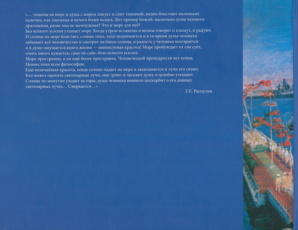 Обе части предваряют работы Василия Кирилловича Нечитайло, Народного художника РСФСР, члена-корреспондента Российской академии художеств, основателя живописной династии Нечитайло. Как любил он писать серебряную полынную степь, так и откликается всем сердцем на красоту моря.