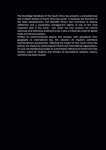 Written by world-renowned experts and scholars, with specialisms from geography to international law, the volume’s 25 chapters contribute interdisciplinary perspectives, reflecting the impact of how South China Sea policies are shaped by national governments and international organizations. As such, the Handbook provides an authoritative reference to South China Sea Studies, useful for students and scholars of international relations, history, maritime and Asian studies.