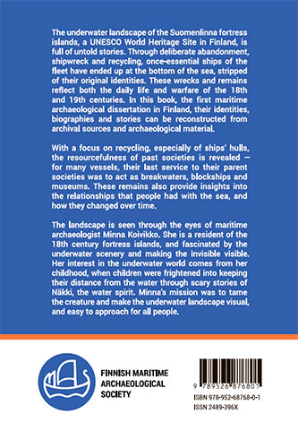 The study site is the underwater seascape of the 18th-century fortress islands of Suomenlinna (Sveaborg) in the harbour of Helsinki, Finland. The site is located in the Gulf of Finland, in the eastern part of the Baltic Sea. The fortress has global significance as a UNESCO World Heritage Site. This study had its origin in the insight that a ship?s hull, while comprised of numerous individual artifacts, could be treated as one object from a viewpoint of archaeological research. From that premise, it followed that the study of the ship as an artefact can be continued through processes of reuse. This change in approach allowed evaluating the reuse of ships in a different way than the traditional concept of recycling, which involves demolishing and cannibalizing all the material of the vessel.