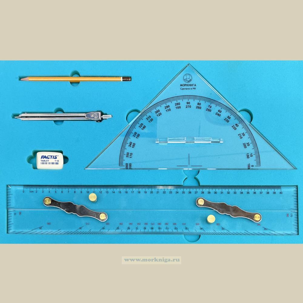 - деревянная коробка с прозрачной крышкой-линейкой (инструментом для прокладки курса)