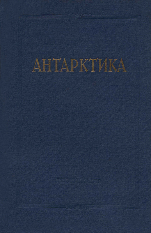 Сборник «Антарктика», написанный коллективом авторов и подготовленный к печати Географическим обществом СССР, содержит материалы по истории открытия и исследования Антарктики, геологическому и геоморфологическому строению, оледенению и водам Южного Ледовитого океана.
