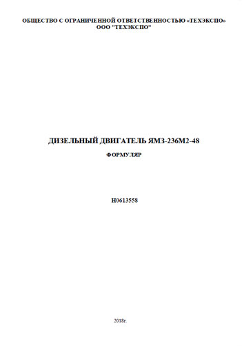 Настоящий формуляр является документом, удостоверяющим основные технические параметры Дизельного двигателя ЯМЗ-236М2-48, гарантируемые его изготовителем и дающим информацию о техническом состоянии Двигателя после изготовления и испытаний.