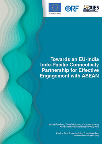 This research paper was sponsored by the EU-India Think Tanks Twinning Initiative 2020-2022 and is the result of a collaboration between the AIES and ORF. The policy report seeks to assess how areas of convergence between the EU and India can bolster effective engagement with ASEAN and enhance the EU-India relationship itself. Cooperation in a third region offers possibilities for EU-India commercial engagement that have so far eluded the EU-India bilateral relationship. While the EU is India's 3rd largest trade partner, India is only the EU's 10th. Europe has a far denser commercial presence in ASEAN markets than India. Amidst these and other challenges, this analysis has identified key partnership opportunities that will be mutually beneficial for EU and India in working to expand the scope of engagement with ASEAN member states.