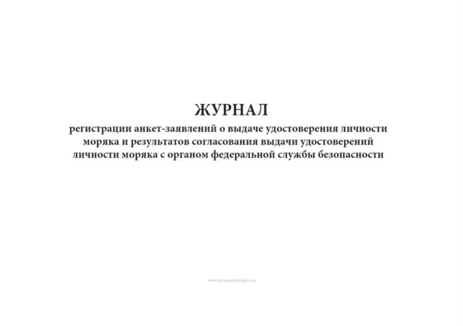 Форма журнала соответствует Приложению 4 к Приказу Минтранса России от 19.12.2008 N 213 "Об утверждении Инструкции о порядке применения Положения об удостоверении личности моряка" и Приложению 3 к Приказу Минтранса России от 12.12.2013 N 460 "Об утверждении Административного регламента Федерального агентства морского и речного транспорта предоставления государственной услуги по оформлению и выдаче удостоверений личности моряка членам экипажей морских судов, судов смешанного (река-море) плавания и судов рыбопромыслового флота"