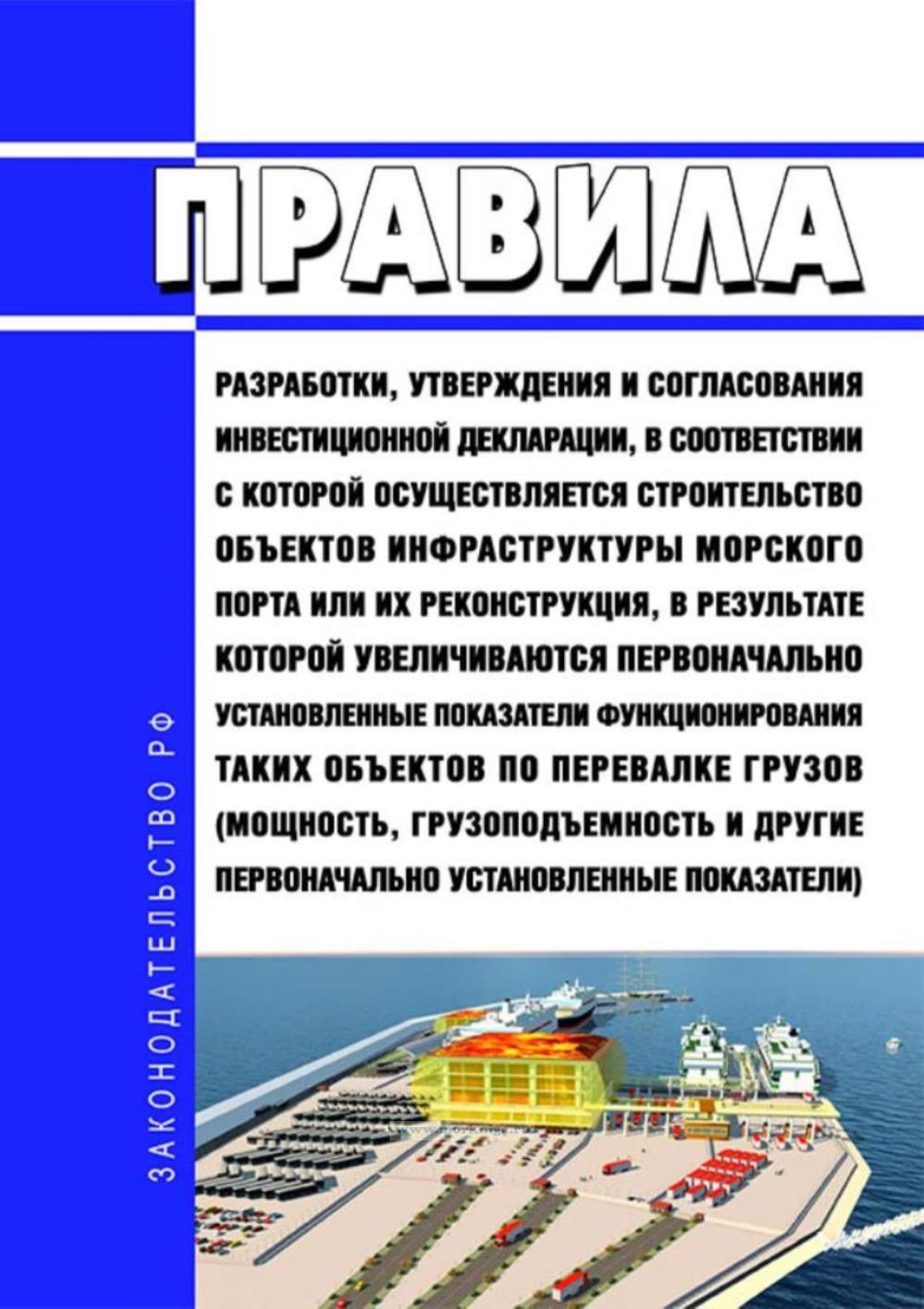Настоящие Правила устанавливают содержание, форму, а также порядок разработки, согласования и утверждения инвестиционной декларации, в соответствии с которой осуществляется строительство объектов инфраструктуры морского порта или их реконструкция, в результате которой увеличиваются первоначально установленные показатели функционирования таких объектов по перевалке грузов (мощность, грузоподъемность и другие первоначально установленные показатели), в том числе основания для отказа в согласовании инвестиционной декларации.