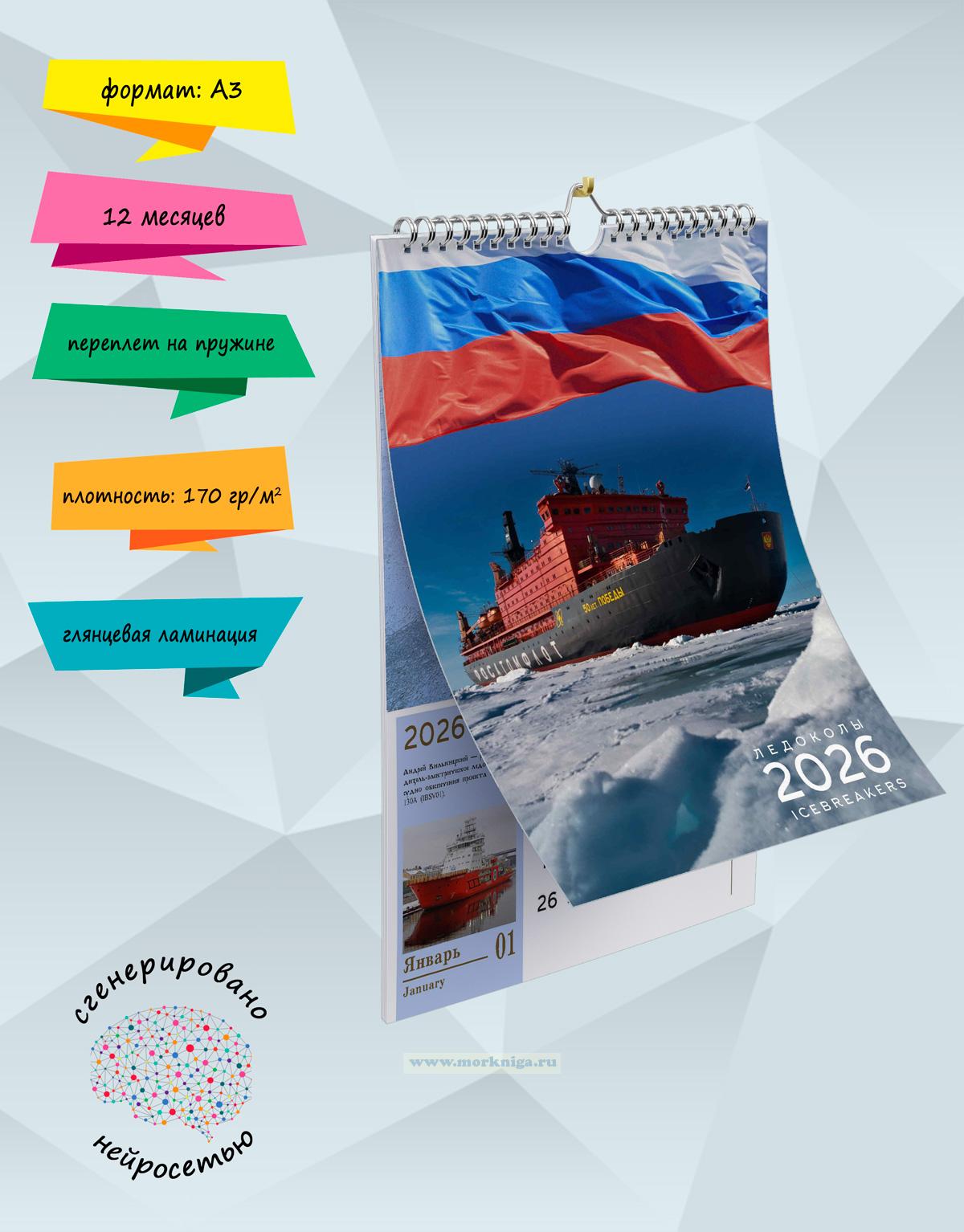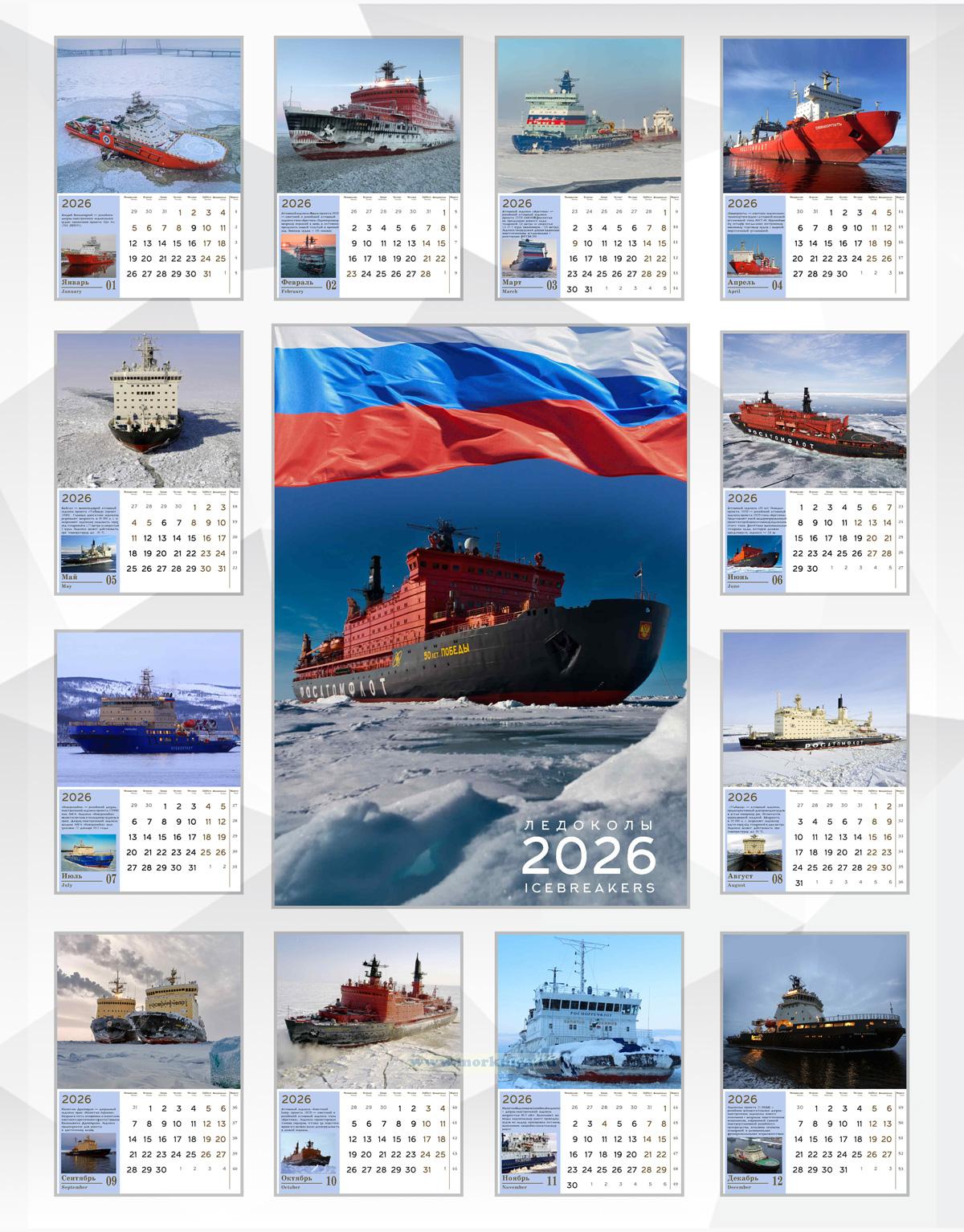 Календарь содержит изображения 12 ледоколов с кратким описанием: