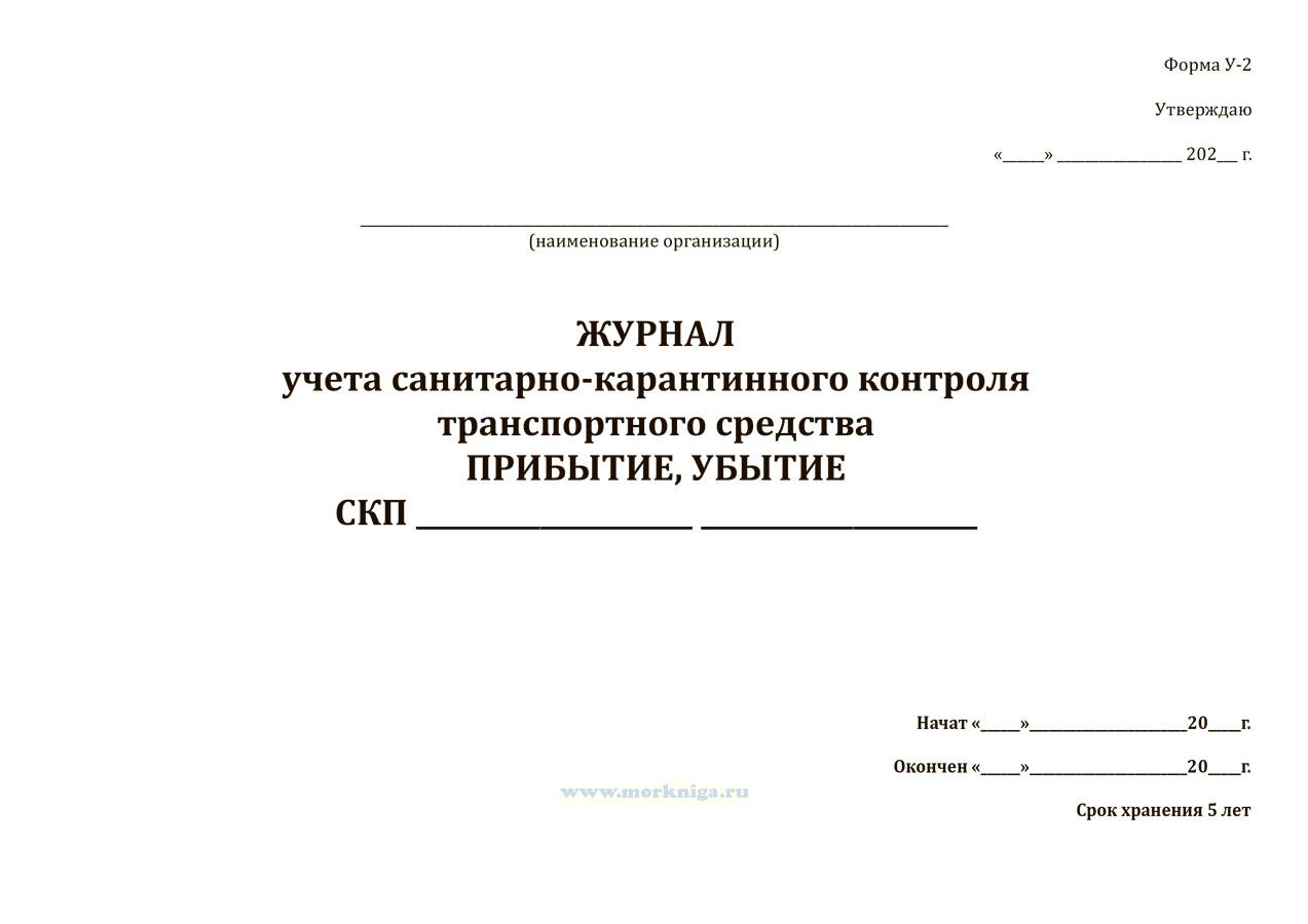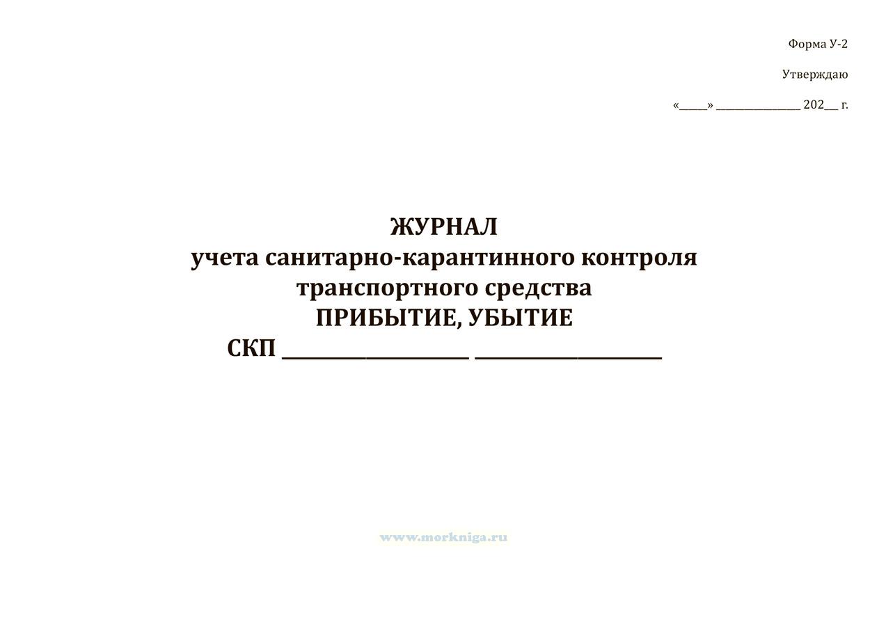 Форма У-2 журнала учета санитарно-карантинного контроля транспортного средства прибытие, убытие соответствует Приложению N 7 к приказу Роспотребнадзора от 27.08.2012 N 871