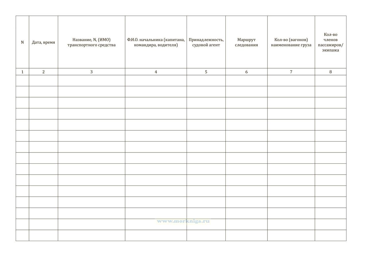 Журнал учета санитарно-карантинного контроля транспортного средства прибытие, убытие (Форма У-2) содержит графы:
