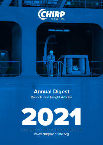 This publication contains summaries of all cases published by CHIRP (Confidential Human Factors Incident Reporting Programme) during 2021. CHIRP Maritime aims to improve maritime safety by providing an independent and confidential reporting system for all individuals employed in or associated with the industry, analysing data and identifying safety trends and informing the community of safety related reports and trends. The Digest categorises incidents according to human factors, deck safety, engineering, technological, environmental, pilotage, COLREGs/navigation, safety culture and health and etc.